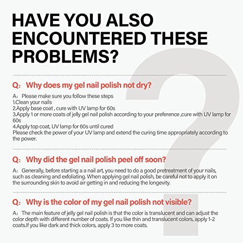 - LONG-LASTING SHINE – AILLSA jelly gel nail polish needs to be cured under LED/UV light, under the correct use steps, it can last for 21-28 days and keep the shiny luster. You’ll never have to worry about your nails peeling off while showering and doing housework. Let AILLSA serve you a longer time!
