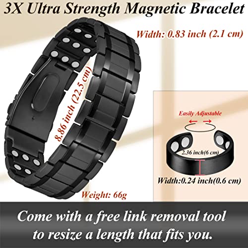 - 📏 Adjustable Magnetic Bracelet 📏 Magnetic therapy bracelet for men, Length: 8.86 inch (22.5 cm), width: 0.83 inch (2.1 cm), weight: 66g. Comes with a free sizing tool that allows you to remove/add links to fit your wrist perfectly. It takes less than five minutes to resize easily.