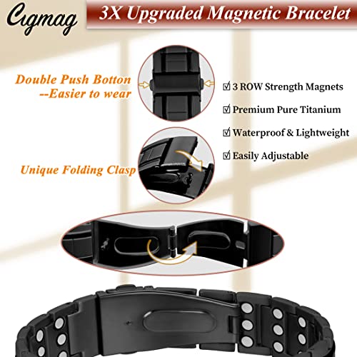 - 🧲 3 ROW Ultra Powerful Magnets 🧲 Mens magnetic bracelets for pain relief with three rows per link of ultra-powerful neodymium magnets, the magnetic titanium bracelet is more effective than two rows of bracelets. You can see the results in a shorter period of time. Magnetic therapy bracelet can help reduce arthritis and inflammation, relieve muscle tension and fatigue, improve circulation, promote relaxation and balanced sleep.