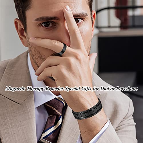 - 🎁 Perfect Jewelry Gift Set 🎁 3X Upgraded Magnetic Bracelet, Unique Folding Clasp and Double Push Botton is more easier to put on and take off. Suitable for wear at all occasions which can foil individual style. It is a good choice for your dad, husband, boyfriend or yourself. Suitable for anyone suffering from poor circulation or pain in the wrist, arm or hand. Nobody will know it’s a therapy bracelet.