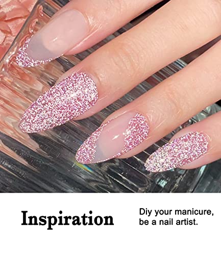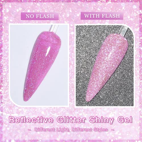 - This gel nail polish set with Glitter achieves a dazzling effect during the day and doubles the effect of Reflective Glitter Gel Nail Polish under the spotlight at night.Turn on your phone flash to take a picture and you will see the amazing little sparkle!It will bring you a very surprising experience.