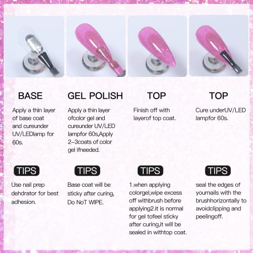 - Easy application and Long lasting: The series of reflective glitter gel polish set is long lasting for 21+ days with perfect shine under proper application. High durability and intense pigmentation makes it stay last longer and brings you brilliant shine finish.