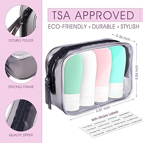 - Túi trong suốt được TSA phê duyệt: Túi đựng đồ vệ sinh cá nhân trong suốt chất lượng cao, bền và thân thiện với môi trường, có dây kéo đôi, khung chắc chắn và khóa kéo chất lượng, giữ mọi thứ ngăn nắp mà không làm lộn xộn, bộ chai du lịch silicon di động hoàn hảo giúp mỗi lần sử dụng trở nên thú vị.