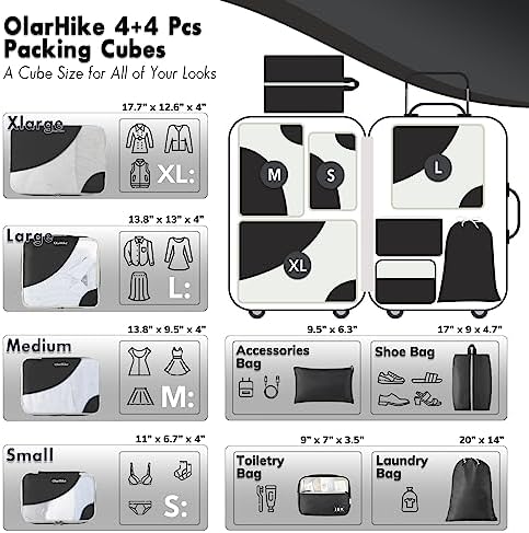 OlarHike 8 Set Packing Cubes for Travel, Luggage Organizer Bags for Travel Accessories Travel Essentials, Travel Cubes for Carry on Suitcases
