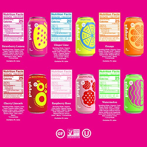 - No fake stuff. Ever. Made with fresh fruit, 5g of sugar or less and 25 calories or less per can. Our ACV is in stealth mode, so all you taste is pure poppi flavor. This is the new school of soda!
