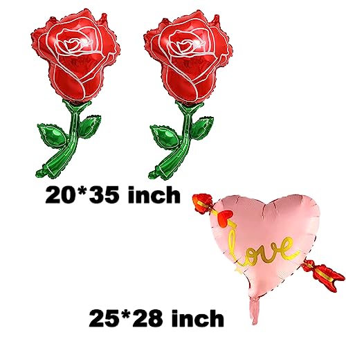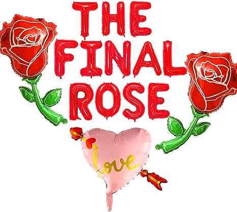 - 16inch red letter balloon ‘THE FINAL ROSE’, 25*28 inch love heart balloon, 20*35 inch rose balloon, 1 pc disposable straw, 1 pc dot glue